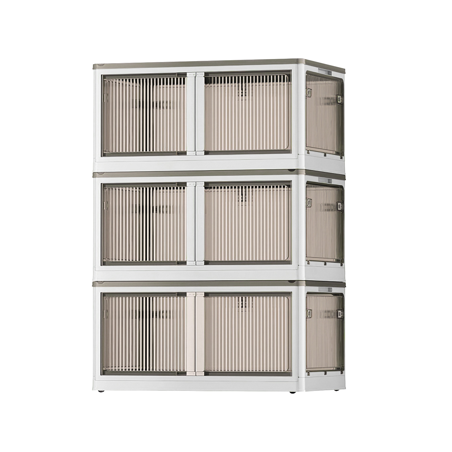 Home > 3Pcs Foldable Storage Bins with Lid 4 Doors Collapsible Stackable Closet Organizer Containers with Lock 4Pcs Wheels