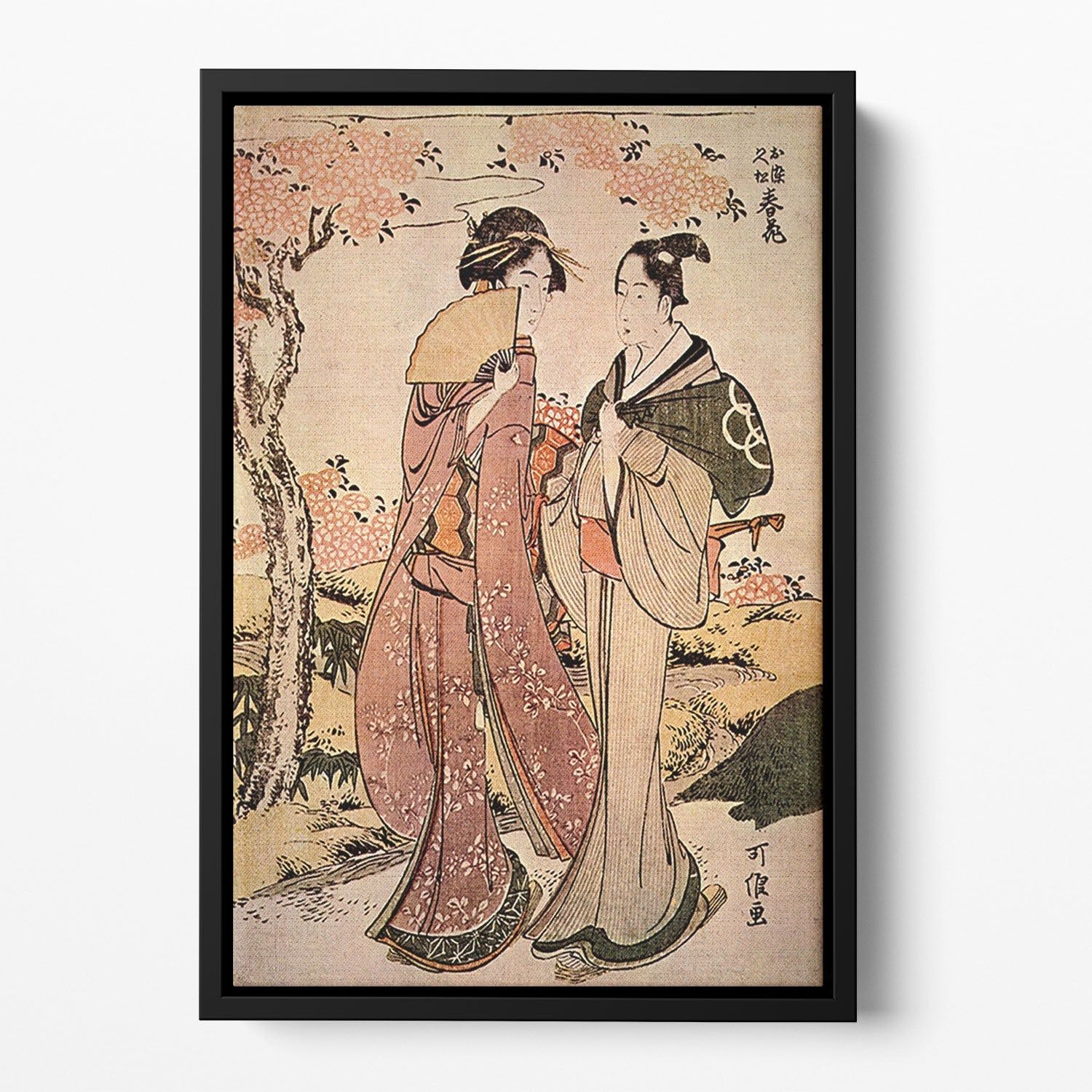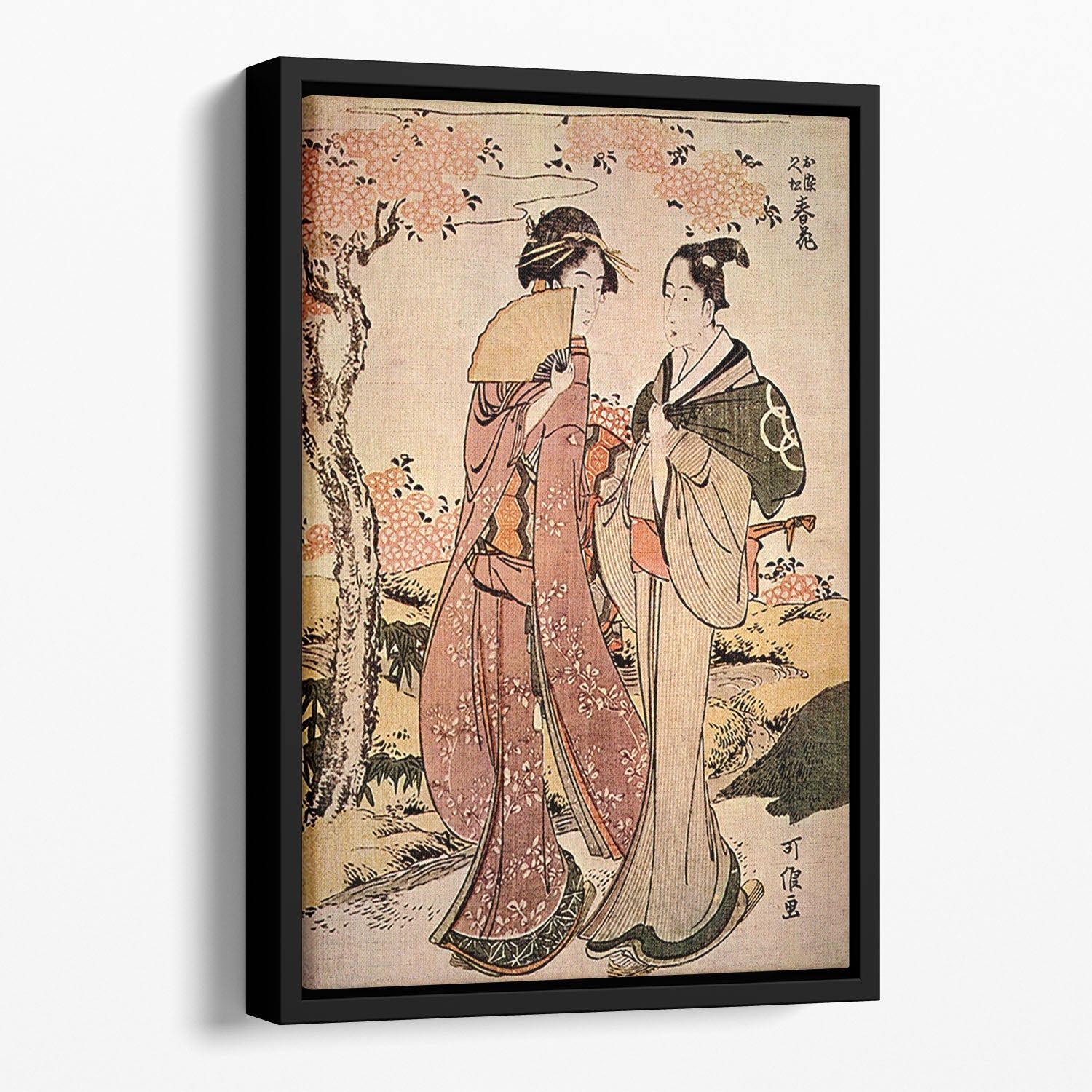 Two women by Hokusai Floating Framed Canvas Two women by Hokusai Floating Framed Canvas